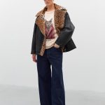 Chaqueta biker efecto piel con solapa cuello e interior de pelo con animal print