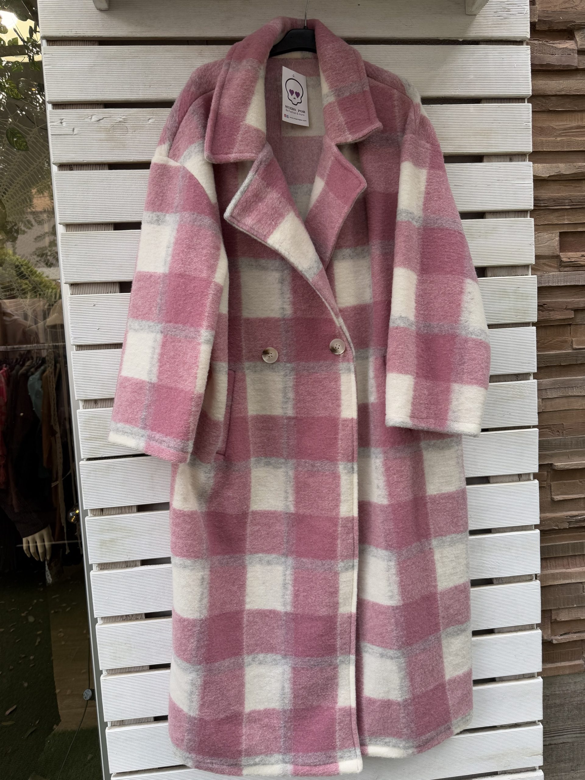 -Abrigo largo cuadros en tonos rosas