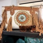 25 de octubre de 2025Bolso piel turquesa con flecos, detalles dorados y piedra central