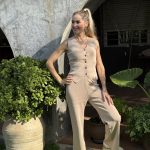 Conjunto punto chaleco pantalón wide leg